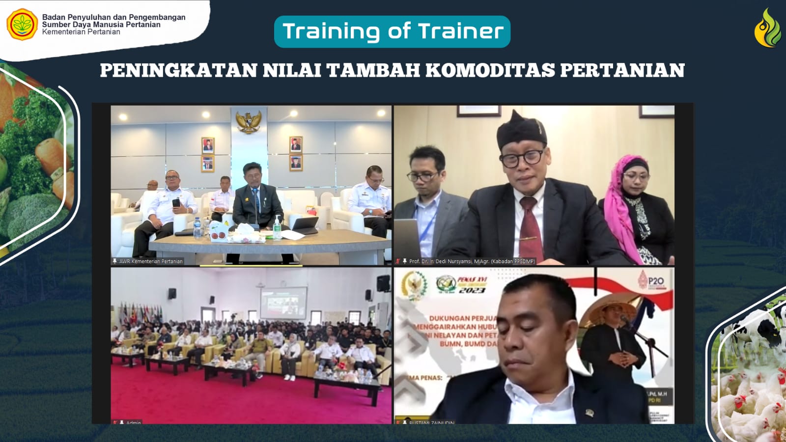 Sementara Kepala BPPSDMP, Dedi Nursyamsi, yang hadir secara online, mengatakan Tema TOT kali ini, peningkatan nilai tambah komoditas pertanian adalah isu yang sangat penting dan merupakan isu yang diangkat pada pertemuan Menteri Pertanian Negara G20 di Bali Tahun lalu.
