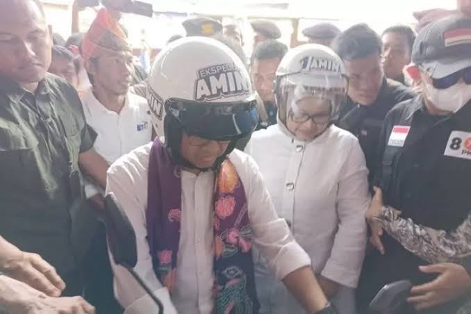FAKTANASIONAL.COM//JAKARTA – Calon presiden Anies Baswedan bersama istrinya Fery Farhati memasuki area Tanah Merah Jakarta Utara menggunakan sepeda motor Yamaha N-Max B 4485 BRV. Mereka menggunakan motor untuk memasuki lokasi kampanye Anies sebagai capres di kawasan padat penduduk di Tanah Merah.