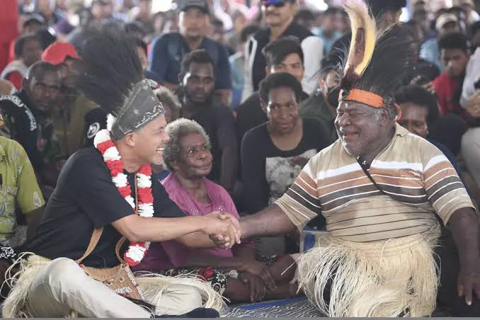 Ganjar menyampaikannya di hadapan masyarakat. Yakni usai menyimak kesulitan masyarakat di RT 03, Kampung Kondo, Kabupaten Merauke. Tepatnya di Dusun Korkari yang berbatasan langsung dengan Papua Nugini.